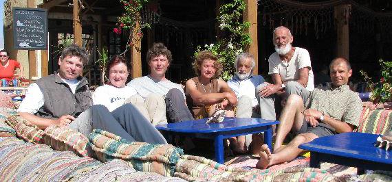 Nach zwei Anrufen bei Sheik Hamid im Wadi Gazala wurden wir schon erwartet. Geplant war eine Kameltour mit 7 Leuten vom Gazala valley (östlichster Punkt auf der Karte) nach Serabit el Khadim, der einzigen altägyptische Tempelruine auf dem Sinai. Wir waren 12 Tage unterwegs und wurden am Schluß von einem Jeep abgeholt, zum Abschlußessen zu Sheik Hamid gebracht (leckerer Fisch mit Reis) und dann nach Dahab wo wir uns noch einen Tag an die Zivilisation gewöhnen konnten. Wir waren mit 7 Kamelen und 4 Beduinen unterwegs, Luftlinie waren es nur 100 km, tatsächlich aber viel mehr weil wir den Trockentälern folgten.