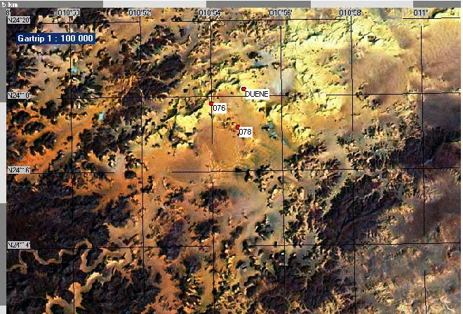 76 Mittags in der Höhle; 78 Nacht m Straussenei und Duene; Duene auf die wir geklettert waren- der erste schwarze Punkt in Richtung 76 ist der Felsen an dem wir die erste Nacht verbrachten!