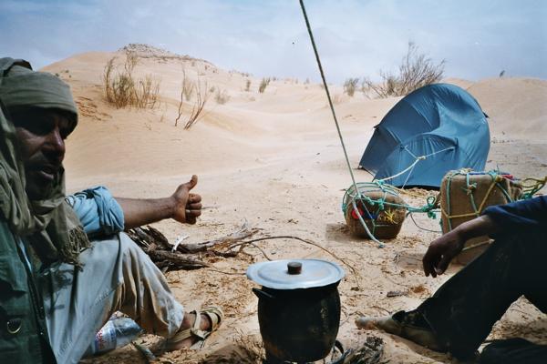 Übernachtung am Tin Baiin - am Zelt sieht man den Wind